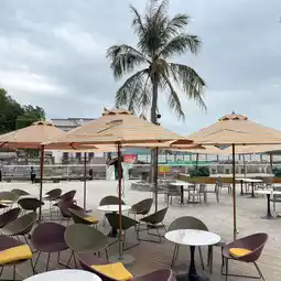 As soon as you step into this cafe, you will be attracted by its unique design. The metal structure of the old shipyard has been cleverly preserved. Sit by the window, order a cup of fragrant latte☕️ and watch the swaying coconut trees outside the window