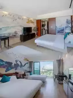 Dongyue Boyang Holiday Apartment in Jin Ting Bay, Shanwei, is truly a paradise for sea view lovers! 🌊 Located in Poly Jin Ting Bay Tianluan Community, just a few steps downstairs to the fine white sandy beach, some rooms even offer direct sea views from the bed, with excellent value for money~