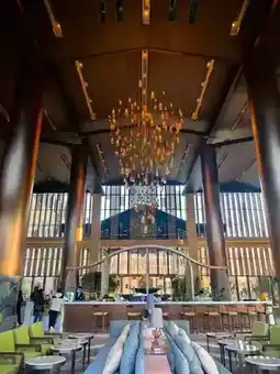Located in Qujiang District, Shaoguan City, adjacent to the Danxia Mountain range, this hot spring hotel stands out with its unique design: the hot spring pools are built into the mountainside, each surrounded by lush forests. The hotel lobby offers a stunning 360° mountain view!