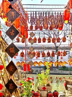 A while ago, I visited Anchang Ancient Town, where traditional buildings with white walls and black tiles and the scent of cured meats filled the air. The town was bustling with pole boats gliding by, and doorways adorned with New Year's decorations added to the picturesque charm.
