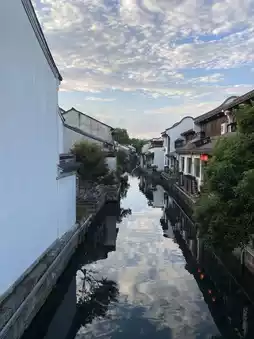 The canal narrows here into a jade ribbon, its tiled reflections snipped by willow branches. Clotheslines span the water, indigo-dyed cloth fluttering like swimming fish in the dusk. A barber’s rusty swivel chair creaks as the dozing old man clutches his clippers, the disinfectant in glass bottles glowing with a 1990s sheen.