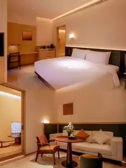 The hotel is expected to feature 90 elegant guest rooms (starting from 45 sqm) and suites (starting from 72 sqm), blending geometric art with natural textures. Each room is equipped with a Dyson hairdryer, Salvatore Ferragamo bath amenities, Tivoli Audio music systems, Nespresso coffee machines, and Teastone classic tea sets.