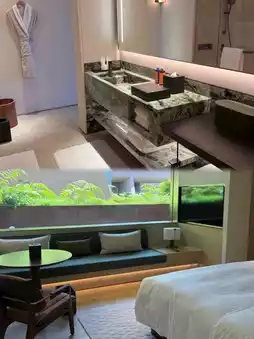 Art installations, quirky sculptures, floral arrangements, lush greenery, and dynamic lighting are everywhere—an art hotel where every step reveals a new vista. The lobby lounge automatically dims its lights at 8pm, instantly transforming into a bar with incredible ambiance.