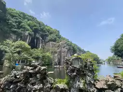 We highly recommend taking a leisurely boat ride on the lake. As the boat slowly moves forward, the scenery of greenery, rock faces, and caves reflected on the water's surface changes constantly.