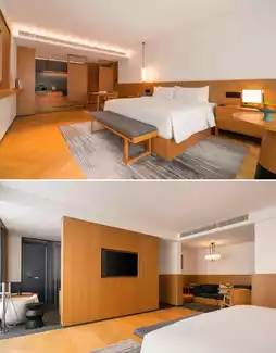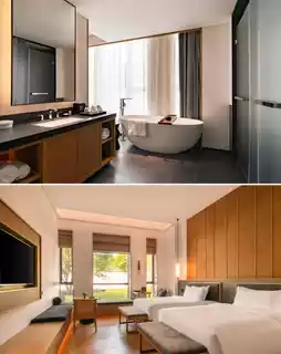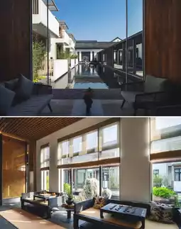 The hotel is designed by the China Academy of Art team, featuring white walls and black tiles blending traditional "taimen" architectural layout, a horizontal three-entry mansion pattern, and a heavy four-slope roof with a meticulously arranged floor plan. "Pu SHOW He Restaurant": a five-star executive chef oversees quality control! It overturns the traditional "stinky and salty" impression of Shaoxing cuisine, with Shengzhou rice cakes as translucent as white jade, Shaoxing three-fresh soup base rich and mellow like Fujian cuisine, and Matsusaka pork blending the essence of Sichuan and Cantonese cuisines. In addition, there is an ancient-style tea room: tasting Longjing/Pu'er tea, lakeside afternoon tea: Jianhu view paired with handmade pastries, and a quiet bar for night talks: Jianhu night view accompanied by special yellow wine/cocktails, the slight intoxication in the night breeze is most pleasant. Fully satisfying parent-child art therapy! Shibolin Stone Sculpture Museum: founder’s private collection of Shoushan stone sculptures, free reservation for visits; Black Pine Bonsai Garden: over 300 rare bonsai arranged like a landscape painting; temperature-controlled infinity pool + Technogym fitness equipment + Yi SPA wellness; children’s beach + Lego/Switch game room, family-friendly; intangible cultural heritage tie-dyeing/ceramics making, take home unique artworks; nearby exploration: Keqiao Ancient Town, Keyan Scenic Area, Kuaiji Mountain Doushuaitian Scenic Area.