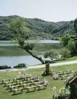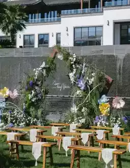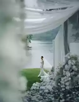 Opposite is the lake, surrounded by mountains, and before you. The ceremony is like a dialogue gently brushed by the mountain breeze, vows softly spoken, at that moment, only hearts flutter.