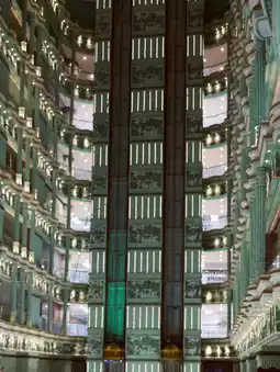 The moment you enter, you're greeted by gleaming emerald-green marble floors that stretch endlessly. Gold-leaf accents dance across ceilings while crystal chandeliers cast magical rainbows everywhere. It's pure opulence!