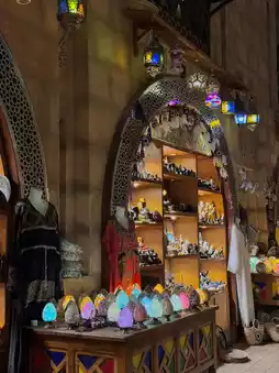 Entering the narrow alley to the right of the mosque reveals a plethora of local shops, creating the feeling of stepping into a small Arabian town.