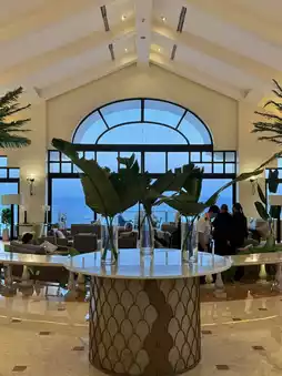 Stepping into the lobby, sunlight pours onto the marble floors, and the luxurious interior catches your eye. The staff at the counter greet you with bright smiles and assist with check-in quickly and kindly. 🤝🏨☀️