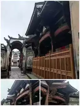 The courtyards within the houses are narrow and deep, symbolizing "four waters returning to the hall, wealth not flowing out." Although the wooden window lattices, stone gateposts, and brick gate covers are damaged, the exquisite patterns of figures, flowers, and birds still reveal the "superb craftsmanship" of Huizhou artisans. The wood carvings on the beams and rafters of the Qing Dynasty Wu Ancestral Hall are particularly renowned.