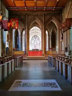 The building itself is a fascinating patchwork of styles, reflecting its evolution over centuries. Parts of the structure date back to the 12th century, but you can also see impressive Gothic and contemporary features. The Lantern Tower, with its soaring stained glass, bathes the nave in colored light—one of the highlights of the visit.
