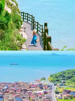 DAY 3: Take a boat to Gouqi Island, where the seawater is unbelievably blue💙. Don't forget to visit Houtouwan, an abandoned village📸, featured in the UK's Daily Mail as one of the most beautiful abandoned places in the world. It has a magical, Lost World vibe🍃. In the afternoon, relax at Dawang Beach, feel the sea breeze, and enjoy the laid-back atmosphere🌊. Afterward, head back home🚢, filled with wonderful memories.