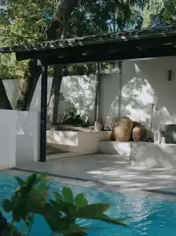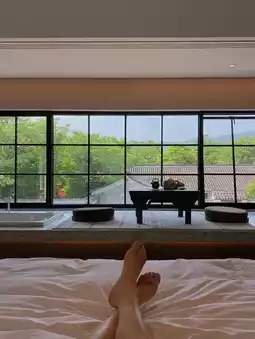 The balcony nestles under a tree’s canopy, the bathtub faces the sea, and morning light spills through floor-to-ceiling windows, turning teacups into vessels of golden light~