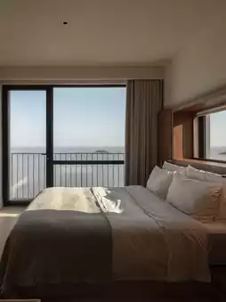 This hotel's location is unbeatable! Perched on a hilltop, surrounded by the sea on three sides, with a iconic lighthouse 🗼 right next door! It transforms the island's original stone houses into design masterpieces! Rough stone walls, minimalist lines, expansive floor-to-ceiling windows… preserving the rustic charm of the fishing village while infusing modern comfort and aesthetics. It’s like a maritime museum, showcasing stories of the sea and time.
