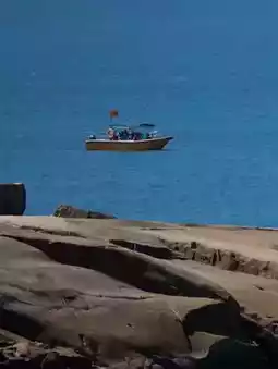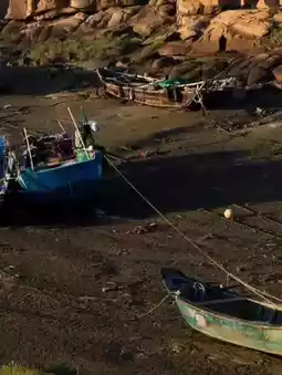 🚤 Fishing Culture Alive – Wooden boats resting on rocky shores at low tide, a glimpse into the daily rhythm of island life.