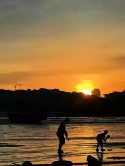 🌞 Golden Hour Magic – As the sun dipped, families searched for shells on glowing sands that shimmered like gold.