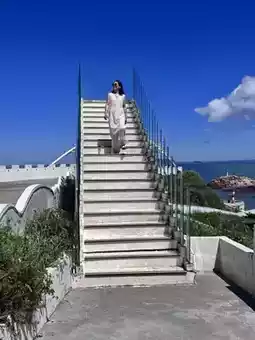 This blue-and-white coastal road looks like it’s abroad no matter how you pose! It’s recommended to wear a light-colored dress; the light is softest after 3 PM 🌈