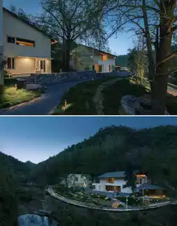 At the Moganshan location, you can hear the babbling streams and rustling bamboo leaves, feeling the literary and artistic temperament and design aesthetics like a "forest path"; in Nandong, Zhoushan, 18 Hui-style buildings are staggered along the mountain slope, with white walls and black tiles hidden among the greenery. From afar, you see the green farmland, and nearby, you hear the surrounding streams, quietly enjoying the leisure of "a small retreat in the wild";
