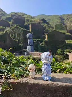 In the abandoned village of Shengshan, Zhoushan, I brought along Ciyu Xiaoye and successfully captured the "Xiaoye vibe" here! The abandoned houses entwined with green vines feel like a secret realm forgotten by time, and Xiaoye's presence adds a touch of liveliness and fantasy to this desolate place.