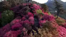 [CityScene]Morning: Enjoy the sea of flowers at Shennongying meadow and take aerial photos of the magnificent scene of azaleas blending with the sea of clouds.