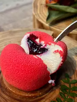 The best of the best! The panna cotta melts in your mouth like a cloud, topped with sweet and sour blueberry sauce, and hidden apple chunks at the bottom. The best part is the edible gold foil "apple stem," so cute that you can't bear to dig in!