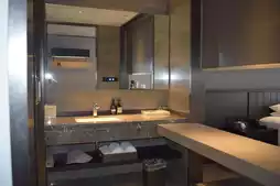 The moment I entered the hotel, my pupils dilated in shock😲! This isn’t just a hotel; it’s a cleverly designed art maze🧩! In the lofty lobby, metal lines and diamond-shaped glass curtain walls collide to create magical light and shadow✨. Standing in the dappled light lounge area, any pose looks like a magazine cover📰! The walls are bursting with artistic decorations, paired with unique spatial design, every corner hides a secret for perfect photos📸!