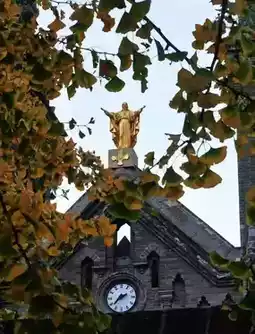 Entering the church square, the green lawns complement the ancient architecture beautifully. Brides in pristine white wedding dresses capture moments of happiness here, their flowing gowns harmonizing with the church's tones, each frame resembling a classic movie scene. Light filters through the stained-glass windows, casting a kaleidoscope of colors on the ground. Wandering through, it feels like stepping into a magical world of light and shadow. Leaning against the weathered stone pillars and gazing up at the towering dome, sunlight seeping through the cracks warms the face, creating a serene moment where time seems to slow down.