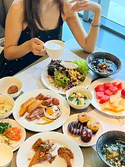 Breakfast offers incredible variety (both Western and Chinese), with ingredients so fresh you can taste the sunshine~ Where aesthetics meet deliciousness! Sitting by the restaurant windows with desserts while enjoying the view makes time feel slower.