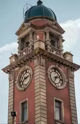 Built in 1927 and meticulously designed by a Dutch architect, this U-shaped building features a towering central clock tower and gracefully extended wings. The parapet walls and the beaded green dome of the clock tower complement each other, sketching a stunning silhouette against the blue sky. The revolving cross-shaped main door, though weathered by time, retains its former elegance and solemnity. A gentle turn seems to echo the hustle and bustle of yesteryears.