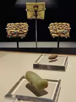 The Upper Xiajiadian Culture (11th–7th century BCE) yielded artifacts like flat-headed bronze swords and bronze deer plaques, similar in style to those from Arzhan Kurgan 2. Later, the southeastern Inner Mongolia region was gradually occupied by the Donghu, ancestors of the Khitan people.