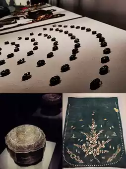 After the Liao banned horse sacrifices for burials, gold and silver horse trappings replaced them. Khitan saddles, Duan inkstones, Shu brocade, and Ding porcelain were hailed as the "Four Finest Under Heaven."