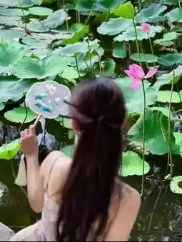 Here, lotus flowers bloom vibrantly under the summer sun - fiery red, rosy pink, and snow-white pure. A gentle breeze makes the lotuses sway gracefully, releasing delicate fragrances that refresh both mind and spirit. In the pond, fish dart playfully among the lotus leaves, while dragonflies occasionally alight lightly on the lotus tips, creating a vivid summer tableau.