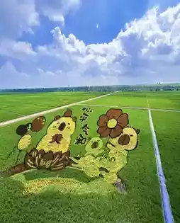 Ride the rice field mini train (35 RMB) through the "Aerospace Breeding" colorful rice fields