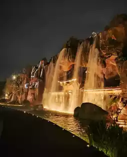 We strolled along the lighted paths, each scenic spot offering a different surprise. The flowers, usually bright and vivid, took on a mysterious aura under the lights; iconic buildings were outlined with contour lights, standing out strikingly against the night; even the lakeside railings were decorated with string lights, resembling a scene from a fairy tale. My husband held the camera, stopping occasionally to take photos of me. The scenery under the lights was especially photogenic, and every photo captured our smiles and the beautiful view before us. We walked and talked, sometimes pointing to a particular sight to share our feelings. The gentle evening breeze brushed our faces, and the air was filled with comfort and happiness, as if the whole world had shrunk to just us and this beautiful night.