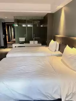 Not wanting to go out at night, we ordered Shenyang specialties: Guobaorou (sweet and sour pork) and Di San Xian (a stir-fry of potatoes, eggplants, and green peppers). After the delivery arrived, we sat at the dining table eating. She said, “This tastes better than the farm’s boxed lunch.” After dinner, I played puzzles with her in the room for a while. When she got sleepy, I used the hotel’s screen casting feature to watch a movie, enjoying a moment of my own time.