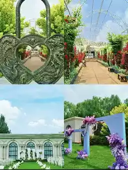 As the morning light casts a soft glow over the lawn of Joy Garden Wedding Theme Park, the magical patterned art installation in Lisa Garden complements the Mediterranean-style architecture beautifully. Walking along the stone path on the royal lawn, the rounded arches and white-green floral arrangements outline European romance, while the breeze sways the ribbons in arcs that harmonize poetically with the natural wood textures of the Ayana Ceremony Hall in the distance. Pressing the shutter in the Light Gathering Forest, the fragmented luster reflected by mother-of-pearl decorations intertwines with the forest light and shadows, each frame imbued with the ritual sense of love.