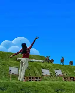 Upon arriving in Shenyang, our first stop was the Heping Bay Magic Cube Farm. As soon as we stepped into the farm, the scene before us warmed our hearts: the clear blue sky was dotted with clouds that looked like carefully shredded cotton, drifting slowly; beneath our feet stretched an endless green meadow, so soft it seemed to gently absorb all our fatigue. Strolling along the path, we occasionally saw a few deer leisurely wandering. Their fur was smooth, their eyes gentle, and sometimes they looked up to meet our gaze, instantly adding a lively and adorable charm to the entire farm.