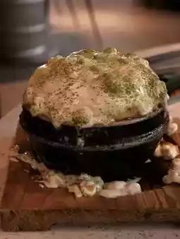 I thought it was a cake, but it turned out to be steamed eggs with a lot of salad dressing and sprinkled with matcha powder.