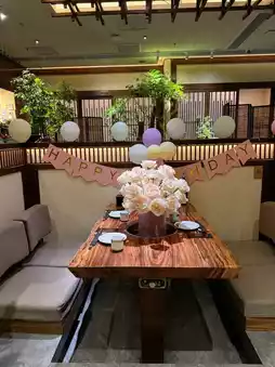 The shop of "Fire Seal" near Fukuda Station is designed in Japanese garden style, and the environment is spacious and elegant. The cafeteria seats have been decorated with birthday decorations, which is great for taking pictures. The restaurant has thoughtfully arranged "longevity noodles" for elders to celebrate their birthdays, and of course cake is also indispensable.