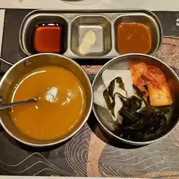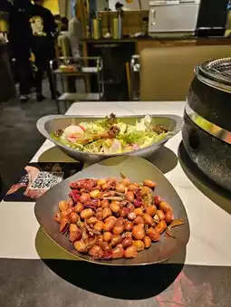 In recent years, Beicun Korean Food has become extremely popular in Shenzhen. After being introduced by various influencers, the Zhonghang City branch sees long queues during weekends, mainly with Hong Kong diners. After waiting for more than an hour, we finally got seated. Although the seating is not very spacious, it is acceptable. With a group purchase package costing around 100 yuan per person, you can enjoy all-day service. There are dedicated staff to help with grilling and serving, making it feel like a feast served to you. The service is excellent, and there is a self-service area with a small amount of unlimited food and condiments. The food tastes good and is definitely worth recommending.