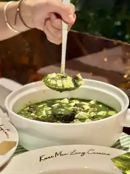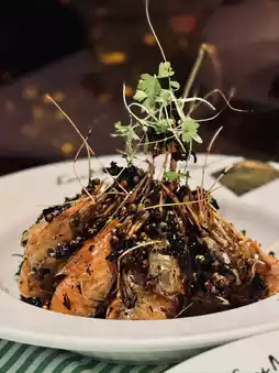The dishes are exquisite and beautiful! We highly recommend the black pepper roasted Hangzhou beggar's chicken and the snowflake beef green mapo tofu. The former fresh chicken is freshly roasted and served hot, with the help of a young lady to cut and cut into pieces, eating effortlessly. The entrance is tender and juicy. The latter is made with fresh spinach juice, which presents the dish with a green picture of spring pool, fresh and natural on the palate, not too spicy.