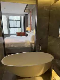 🏠 The hotel is new, with luxurious decoration, branded mattresses and bathroom, smart toilet, electric curtains, 65-inch super large TV, capsule coffee machine, and free mini bar drinks.