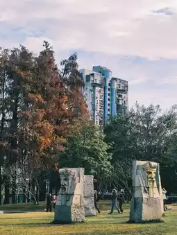 🚍 Sihai Park: Take bus 226 and get off at Yucai No.2 Middle School and walk for 2 minutes. The park is not big, and there are many elderly people playing chess and cards, creating a full atmosphere of life. There are many bald cypress trees in the park that have turned red and yellow, and they look beautiful against the arch bridge. There is also a large sun glass house in the "terrace garden" of the park. You can also visit Sihai Book Bar and Sihai Cafe, which have a limited variety of books and drinks are around 10-20 yuan, so you can take a break.
