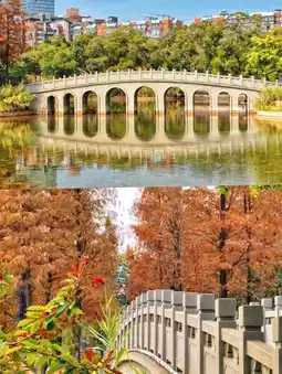 🍁 Check in: Nine-hole Bridge, Crescent Moon Corridor, Shanlin Bayintai, near the Lotus Pond