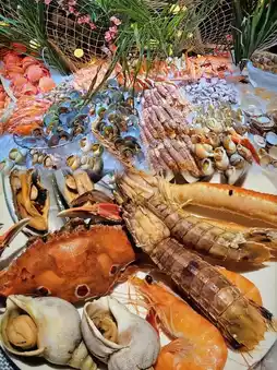 🦞 Seafood area: As soon as you enter the restaurant, you will see this giant seafood boat. There are spotted crab, fresh shrimp, sea snail, shrimp, etc., all fresh and delicious!