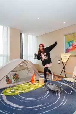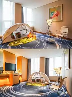 I stayed in the popular wilderness camping-themed deluxe suite! You can feel like you are camping without going outdoors! The floor-to-ceiling windows in the room also offer a beautiful night view of Futian CBD ❤️