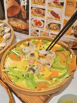 Fresh bighead carp, steamed using traditional bamboo basket method, served in three flavors: black bean sauce, chopped chili, and plain steamed. The fish is tender and smooth, making it irresistible.