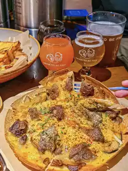 Lamb and Mushroom Pizza, with a thin and crispy crust, the freshness of mushrooms and the richness of lamb perfectly blend together, every bite is a surprise.
