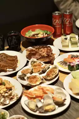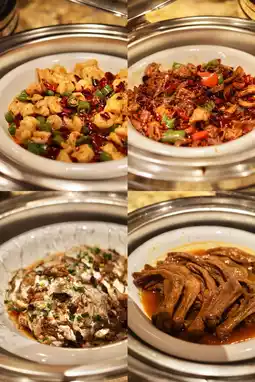 Steamed pomfret, abalone sauce goose palm, garlic ribs...