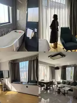 Dan Maple Kerry Resort is located at the foot of Mount Qiniang, surrounded by mountains and fresh air. Dense vegetation. Several people out to play, so directly booked their forest double-storey detached large villa, 👍 a villa has four or five rooms, perfect for a family outing, or group building bombing here friends. We live on the 2nd floor, the view is well lit, you can see the green plants directly through the floor-to-ceiling windows, it's really healing ~💞